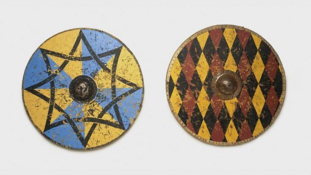 Vikings did not wear much armour. Some chieftains wore mail coats, made of thousands of metal rings but most relied on a round wooden shield for protection since these were very expensive.